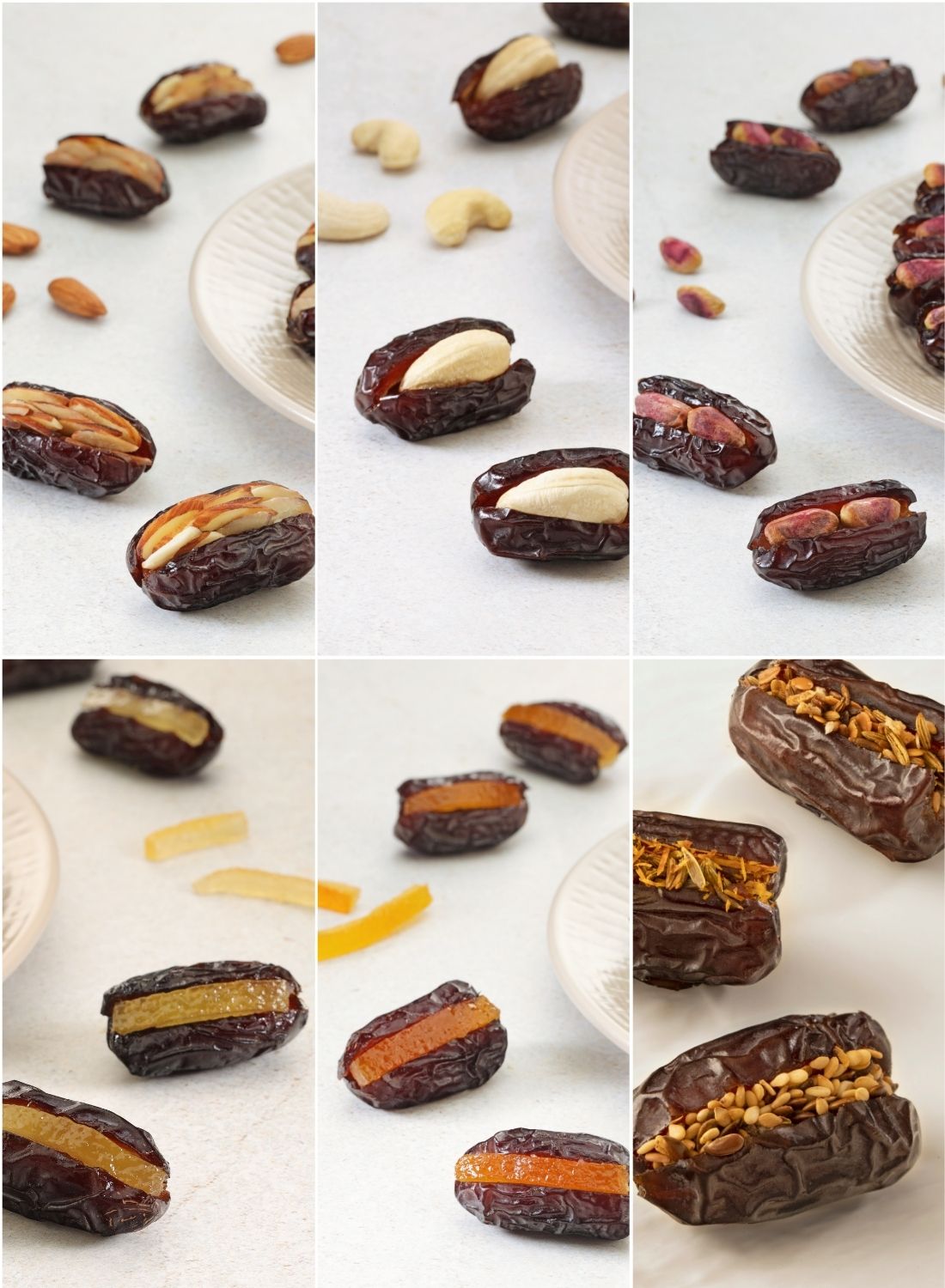 The most popular fillings for stuffed dates include a variety of dried fruits and candied peels, which complement the natural sweetness of the dates.