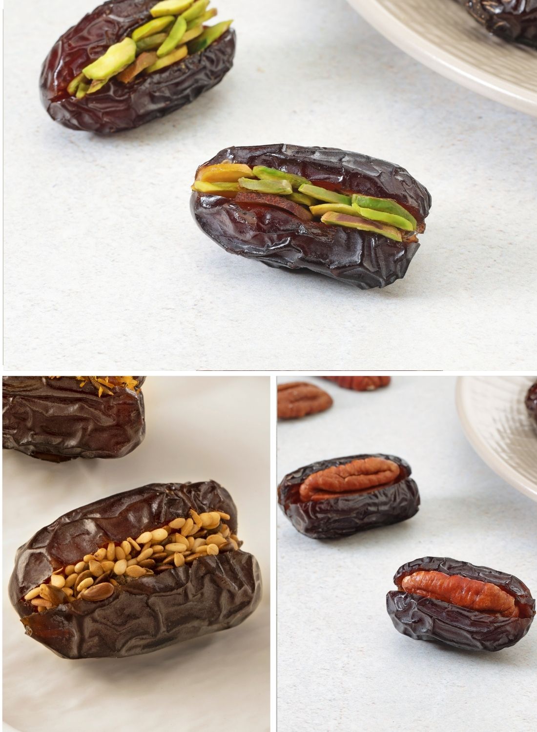 Our selection of stuffed dates includes a variety of healthy dates that are carefully hand-filled with premium ingredients to create a luxurious and wholesome snack.
