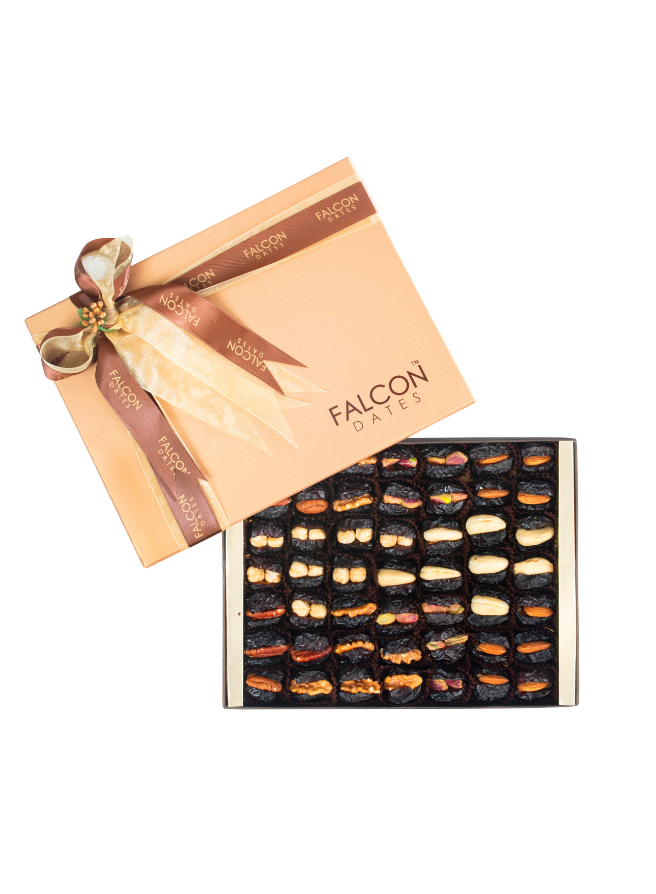 Delight in the yummy goodness of Falcon Dates stuffed with premium cashew nuts. Indulge in the soft and chewy delights, paired with the delightful crunch of cashews, creating a happy and delicious treat perfect for any occasion. Enjoy the exquisite blend of flavors that will leave you wanting more. Order your best stuffed dates to eat online now!