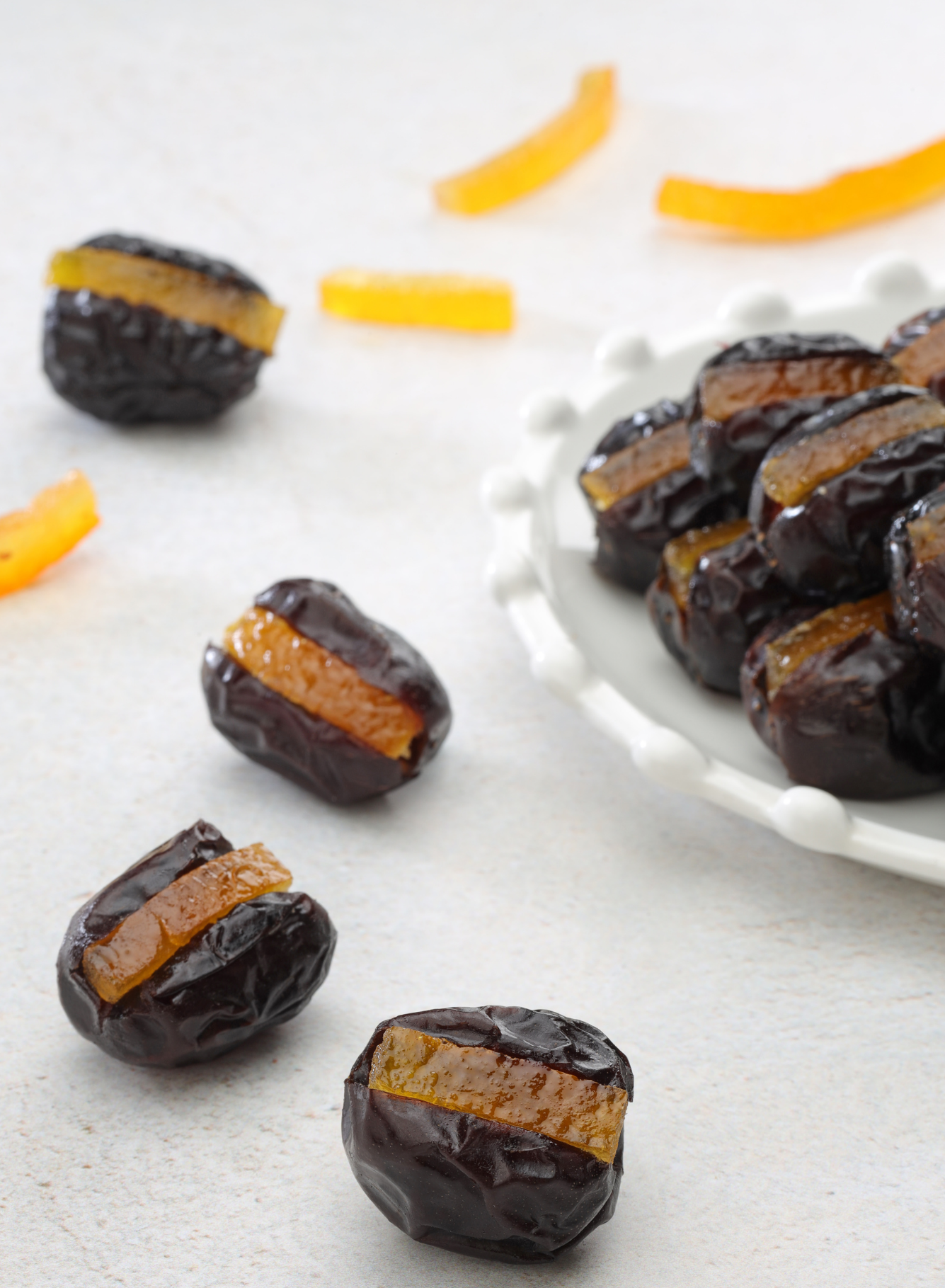 The most popular fillings for stuffed dates include a variety of dried fruits and candied peels, which complement the natural sweetness of the dates.